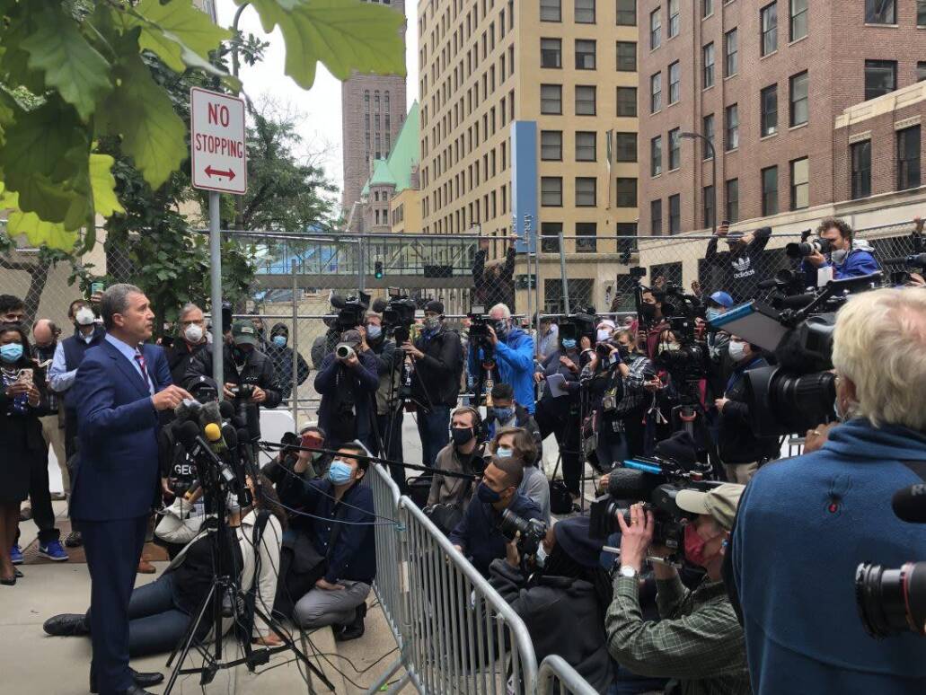 Antonio Romanucci JD '85 speaking to the press.