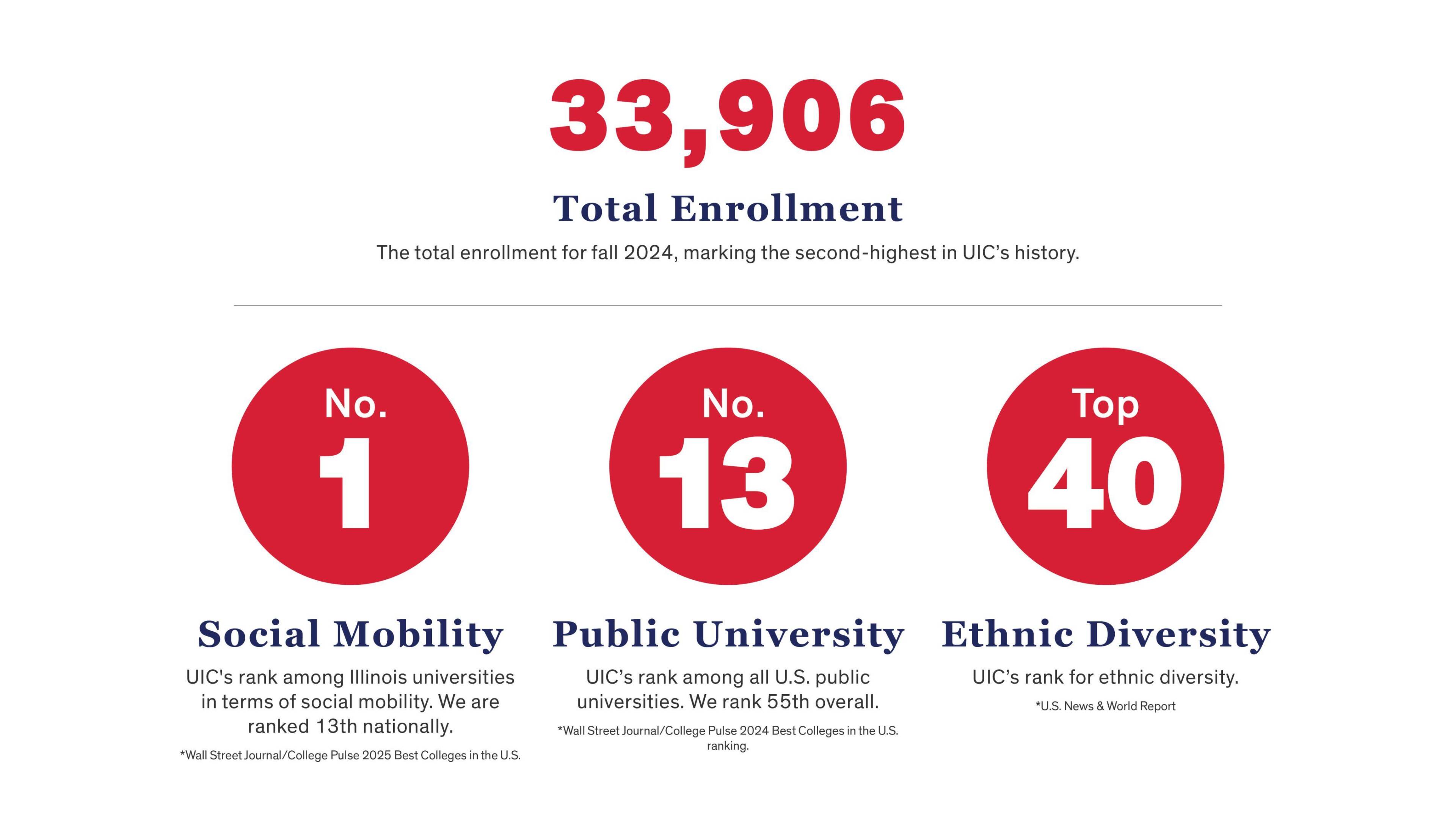 UIC's rank among Illinois universities in terms of social mobility. We are ranked 13th nationally.