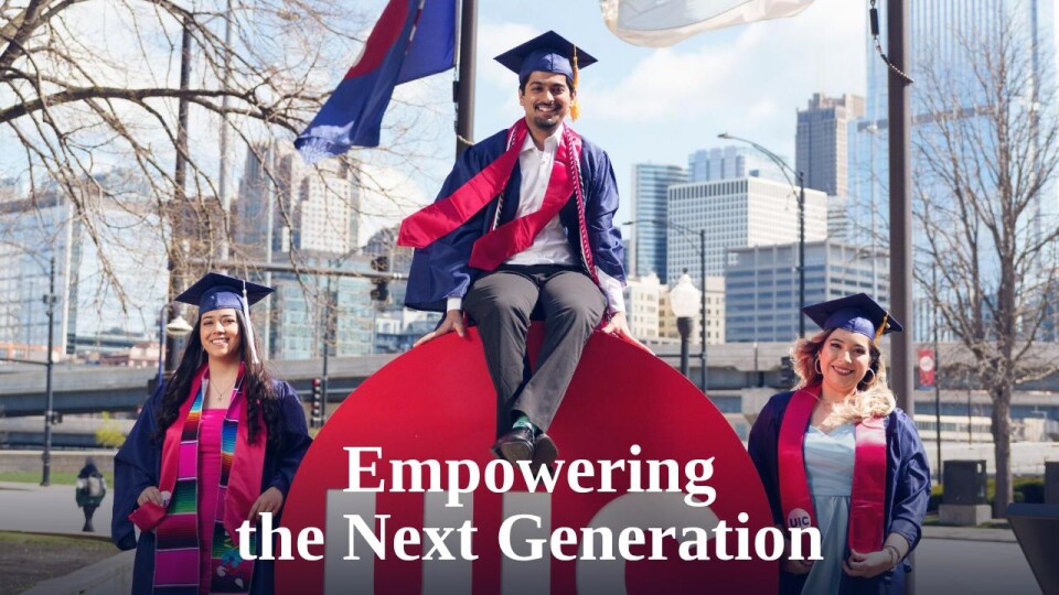 Student success is the University of Illinois Chicago's top priority and central to our mission to offer the broadest access to the highest levels of educational, research and clinical excellence. Our recruitment practices, support and advising initiatives, training and career readiness programs and wellness resources are all built to boost student outcomes. We are educating Chicago’s workforce and equipping students to compete globally and lead meaningful lives all while fostering a sense of connection and belonging to our university.