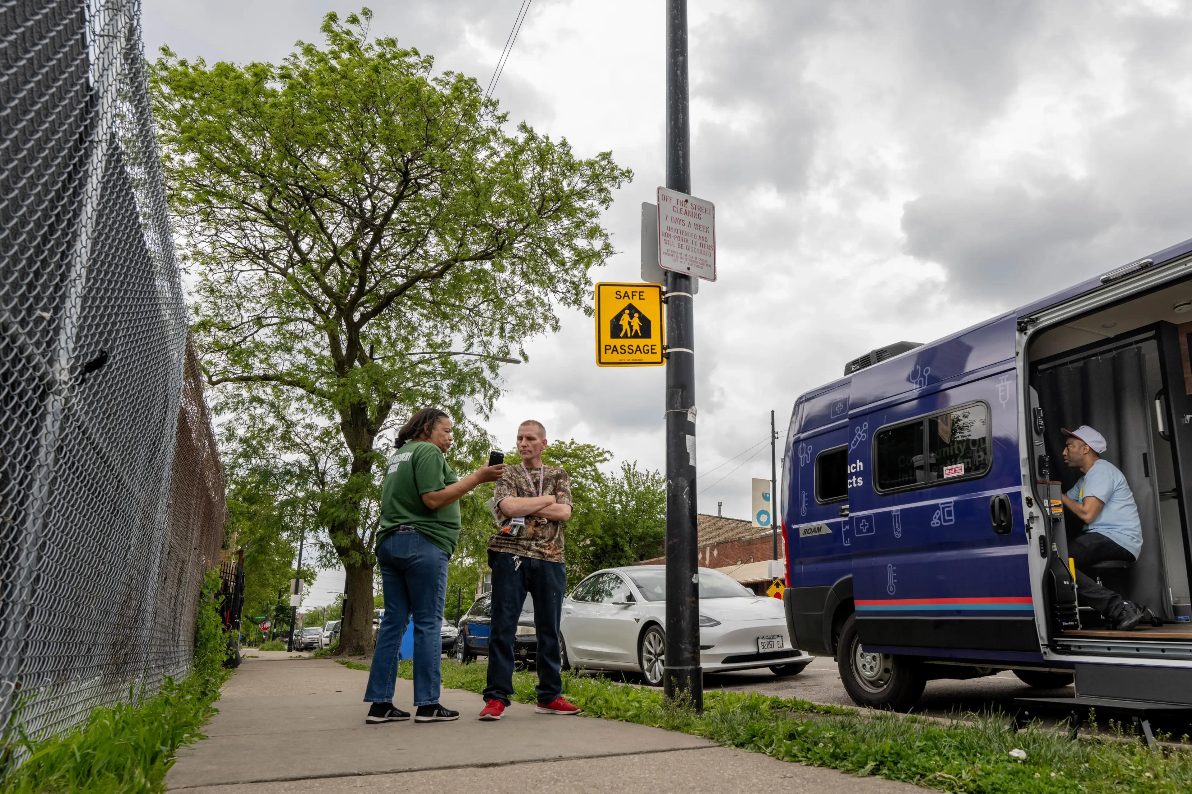On a Friday this June, a trio of vans parked at the corner of Homan and Chicago avenues in Humboldt Park, along the edge of an empty dirt lot where a store once stood.