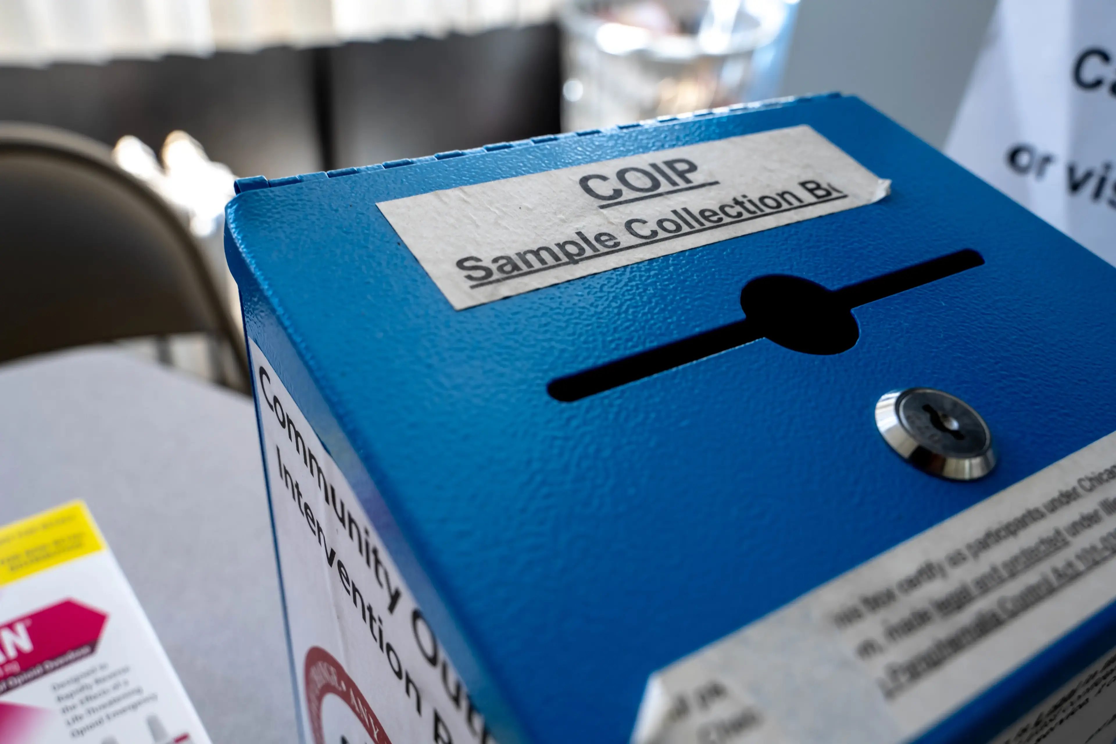 COIP’s sample collection box allows clients to test drugs for impurities, which can be fatal.