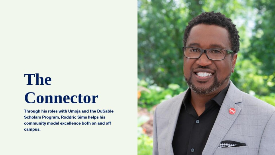 Through his roles with Umoja and the DuSable Scholars Program, Roddric Sims helps his community model excellence both on and off campus.