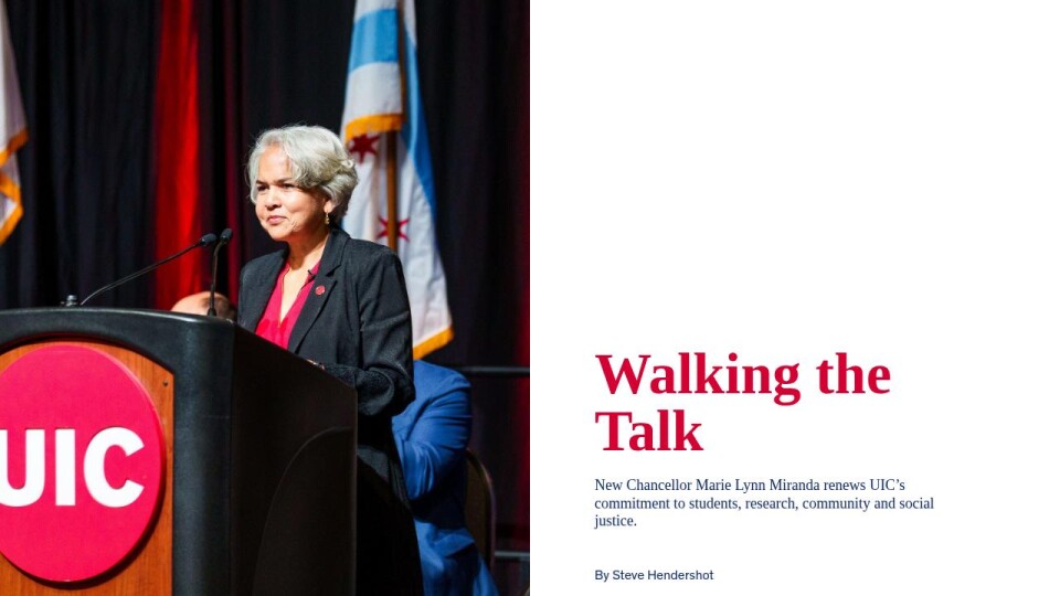 New Chancellor Marie Lynn Miranda renews UIC’s commitment to students, research, community and social justice.