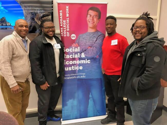 Enter Marvin Lindsey, MSW ’06, who facilitates the We Are Men (WAM) program at the Jane Addams College of Social Work (JACSW). The program encourages Black men like Banks to earn a master’s degree in social work and go on to assume leadership positions in communities and community organizations that serve the many Black men who are suffering from trauma.