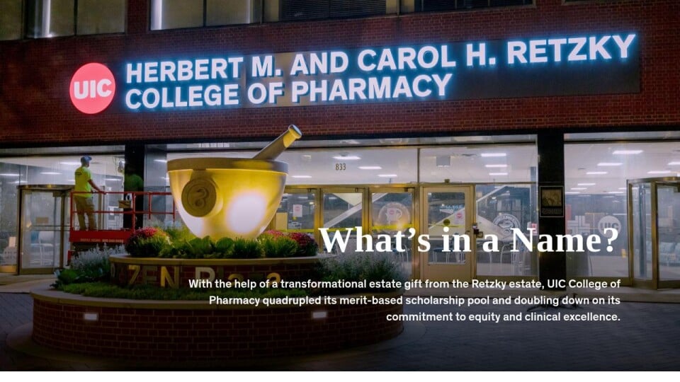 With the help of a transformational estate gift from the Retzky estate, UIC College of Pharmacy quadrupled its merit-based scholarship pool and doubling down on its commitment to equity and clinical excellence.
