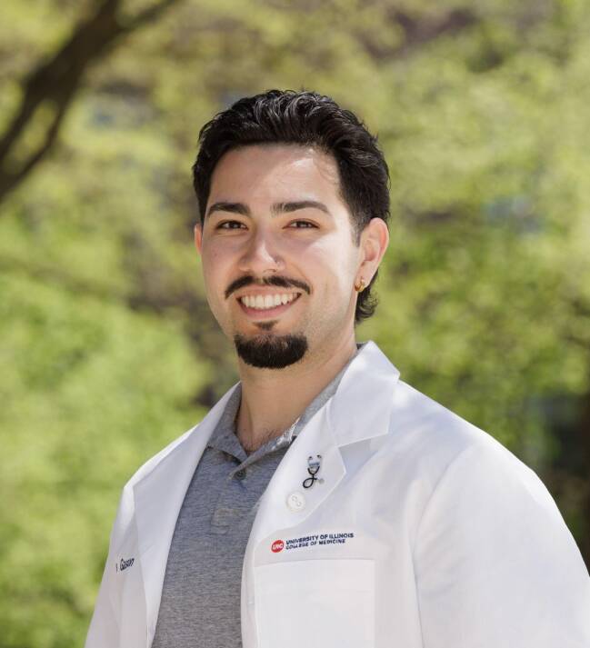 UIC College of Medicine student Andres Gascon, first in his family to attend med school, is now giving back to his supportive community.